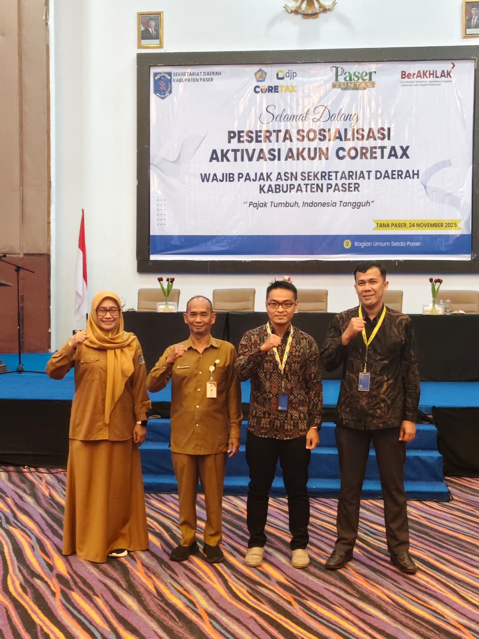 TANA PASER – Sebanyak kurang lebih 300 Aparatur Sipil Negara di Lingkungan Sekretariat Daerah Kabupaten Paser mengikuti sosialisasi aktivasi akun coretax. Kegiatan tersebut berlangsung di Hotel Kryad Sadurengas, Senin (24/11/2025).