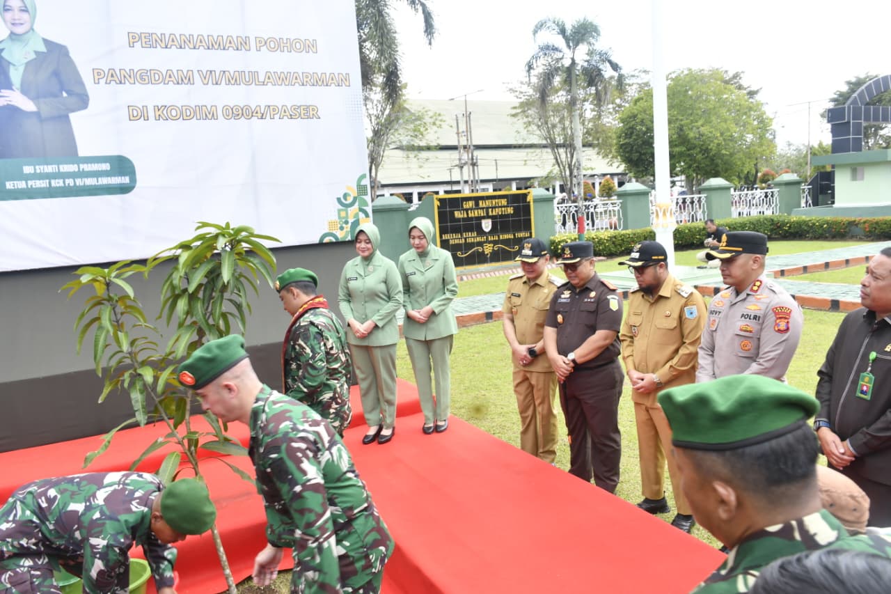 Kunjungan tersebut berlangsung dengan penuh kehangatan dan kebersamaan. Dalam rangkaian kegiatan, Pangdam VI/Mulawarman melaksanakan penanaman pohon yang disaksikan langsung oleh Bupati dan Wakil Bupati Paser serta jajaran Forkopimda sebagai bentuk kepedulian terhadap lingkungan.