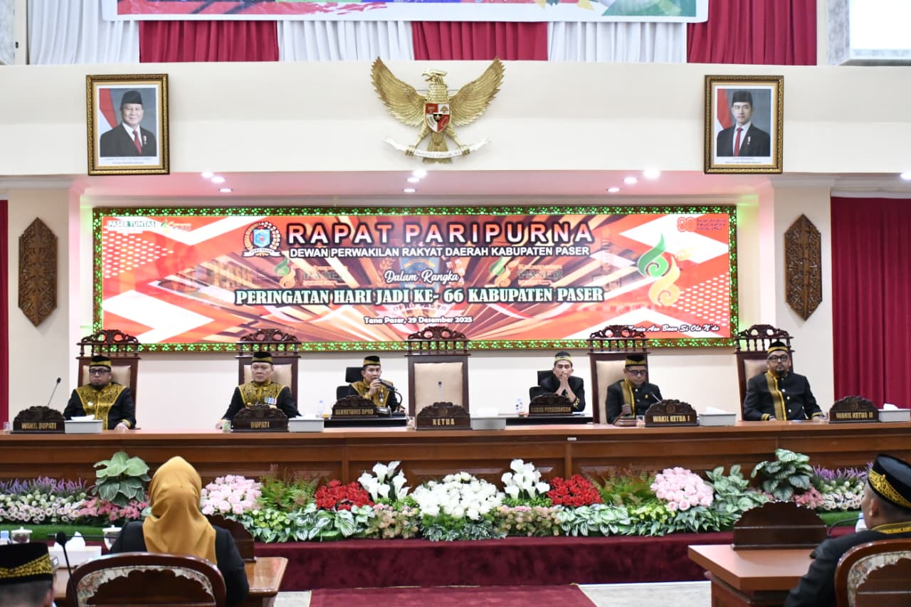 Rapat paripurna tersebut dipimpin oleh Wakil Ketua I DPRD Kabupaten Paser, Zulkifli Kaharudin, dan mengusung tema “Kolaborasi Selaras Wujudkan Paser Tuntas.” Kegiatan ini dihadiri unsur Forkopimda, anggota DPRD, kepala perangkat daerah, instansi vertikal, tokoh masyarakat, serta tamu undangan lainnya.