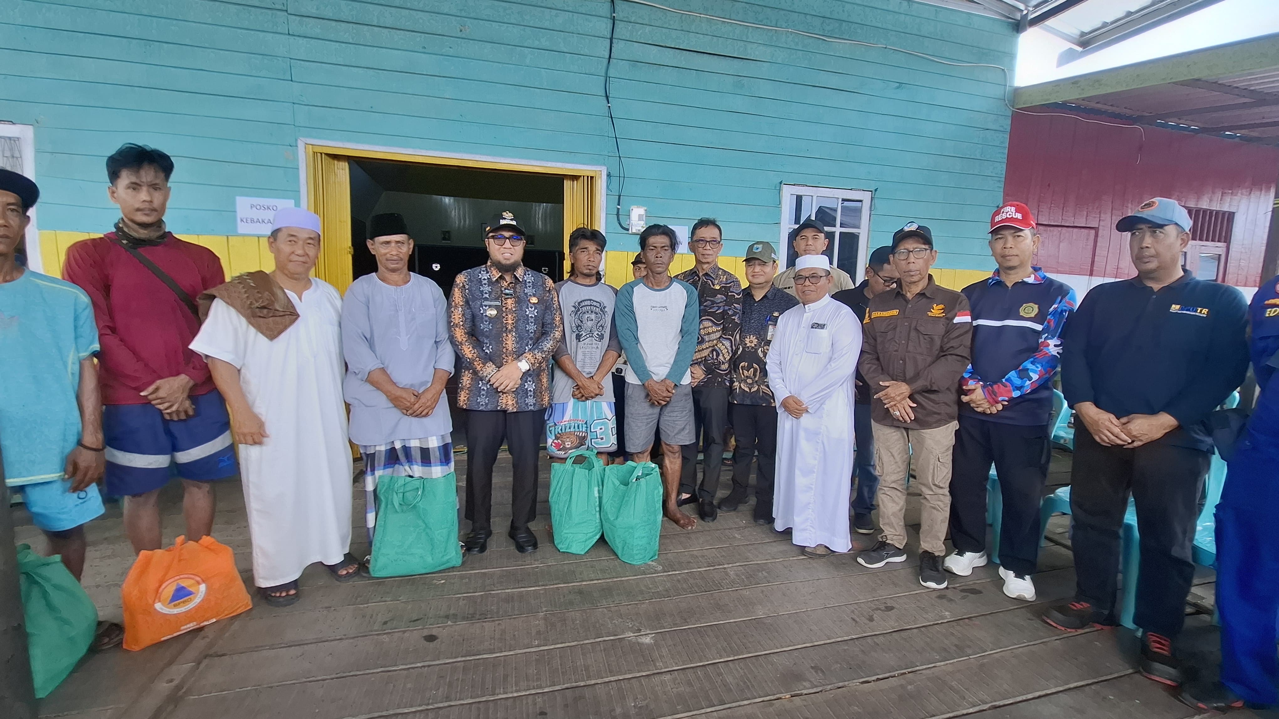 Sebelum mengakhiri kunjungannya Wabup Ikhwan memberikan bantuan secara simbolis kepada para korban kebakaran di Desa Muara Adang. (Prokopim)