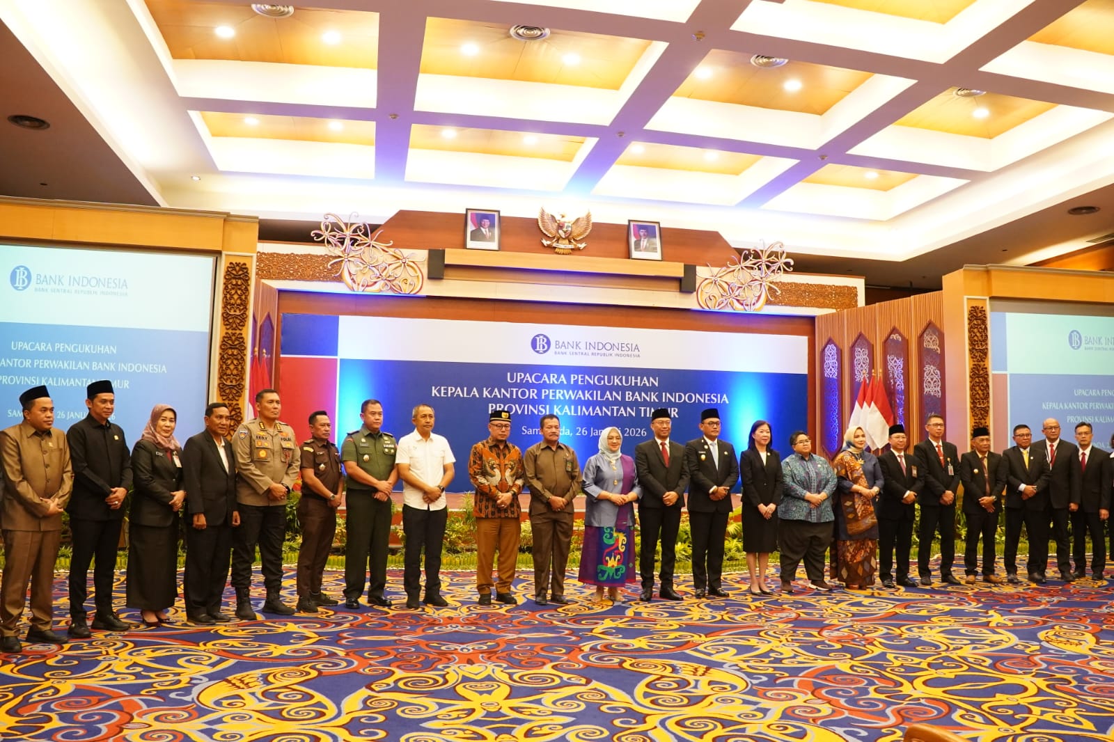SAMARINDA - Staf Ahli Bidang Ekonomi Kabupaten Paser Hj. Ina Rosana, S.Pi, MM menghadiri Pengukuhan Kepala Kantor Perwakilan Bank Indonesia Provinsi Kalimantan Timur, senin (26/1/26) siang.