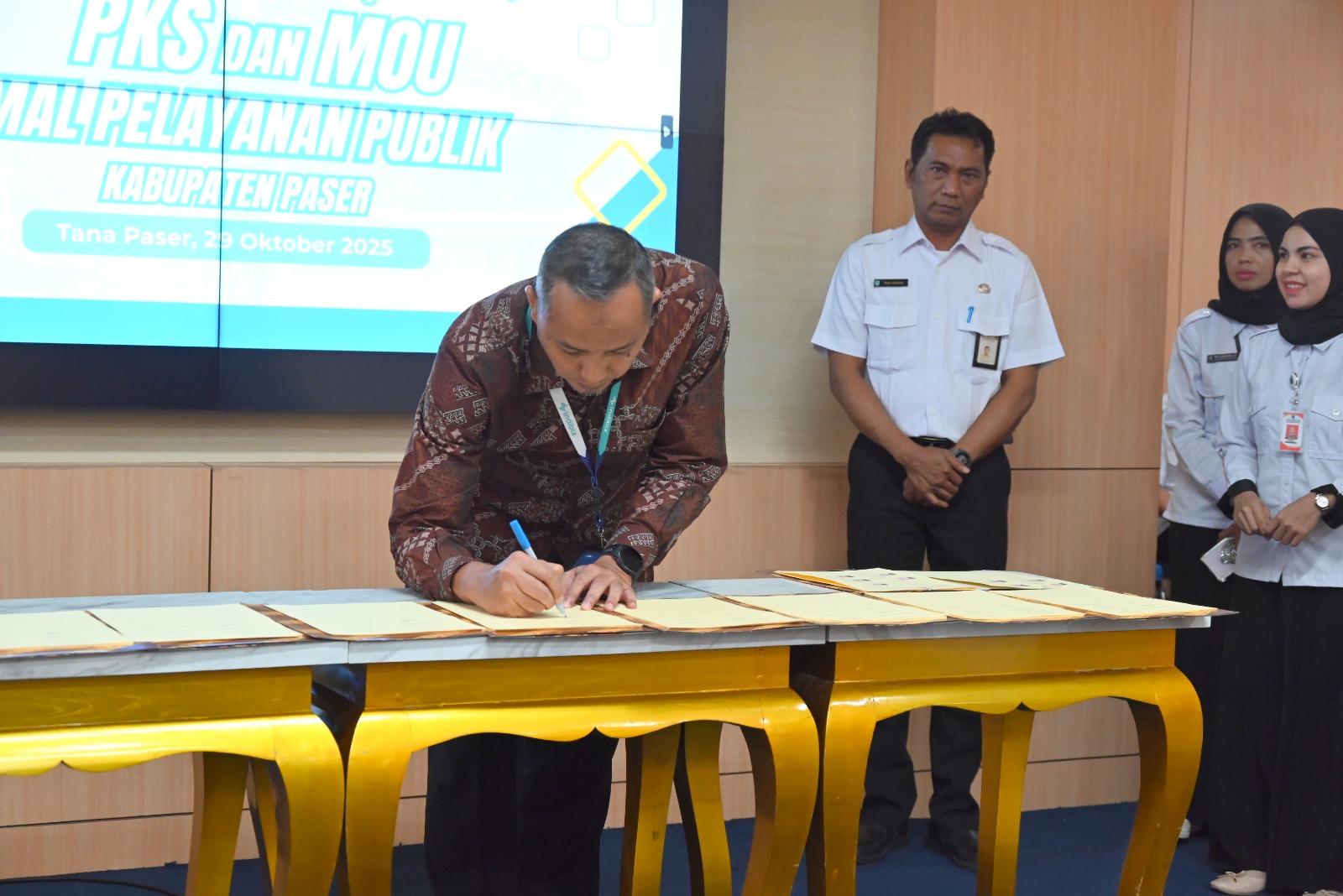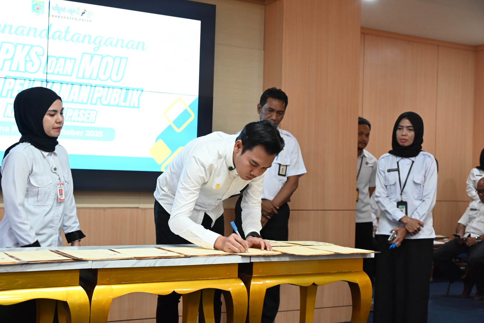 TANA PASER - Pemerintah Kabupaten Paser melalui Dinas Pelayanan Modal dan Pelayanan Terpadu Satu Pintu ( DPMPTSP ) melaksanakan Penandatanganan MoU dan Perjanjian Kerjasama ( PKS ) dalam Penyelenggaraan Mal Pelayanan Publik ( MPP) dengan beberapa Instansi terkait dengan MPP sebagai komitmen bersama mewujudkan pelayanan terpadu yang berkualitas. Kegiatan tersebut berlangsung di Ruang Rapat Sadurengas, Rabu (29/10/2025).