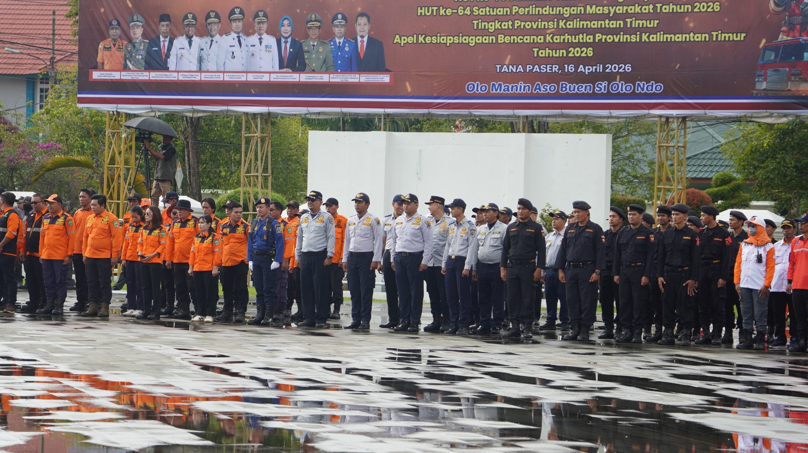 TANA PASER – Upacara gabungan peringatan HUT Pemadam Kebakaran dan Penyelamatan ke-107, Satpol PP ke-76, dan Satlinmas ke-64 tingkat Provinsi Kalimantan Timur Tahun 2026 menjadi momentum penting untuk menegaskan penguatan sinergi, profesionalisme, serta kesiapsiagaan dalam menjaga keselamatan dan ketertiban masyarakat. Kegiatan diselenggarakan di halaman Kantor Bupati Paser, Kamis (16/4/2026). yang dipimpin langsung oleh Wakil Gubernur Kalimantan Timur, Seno Aji.