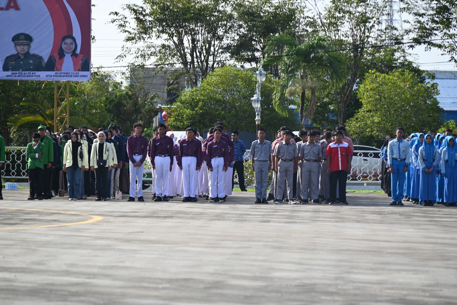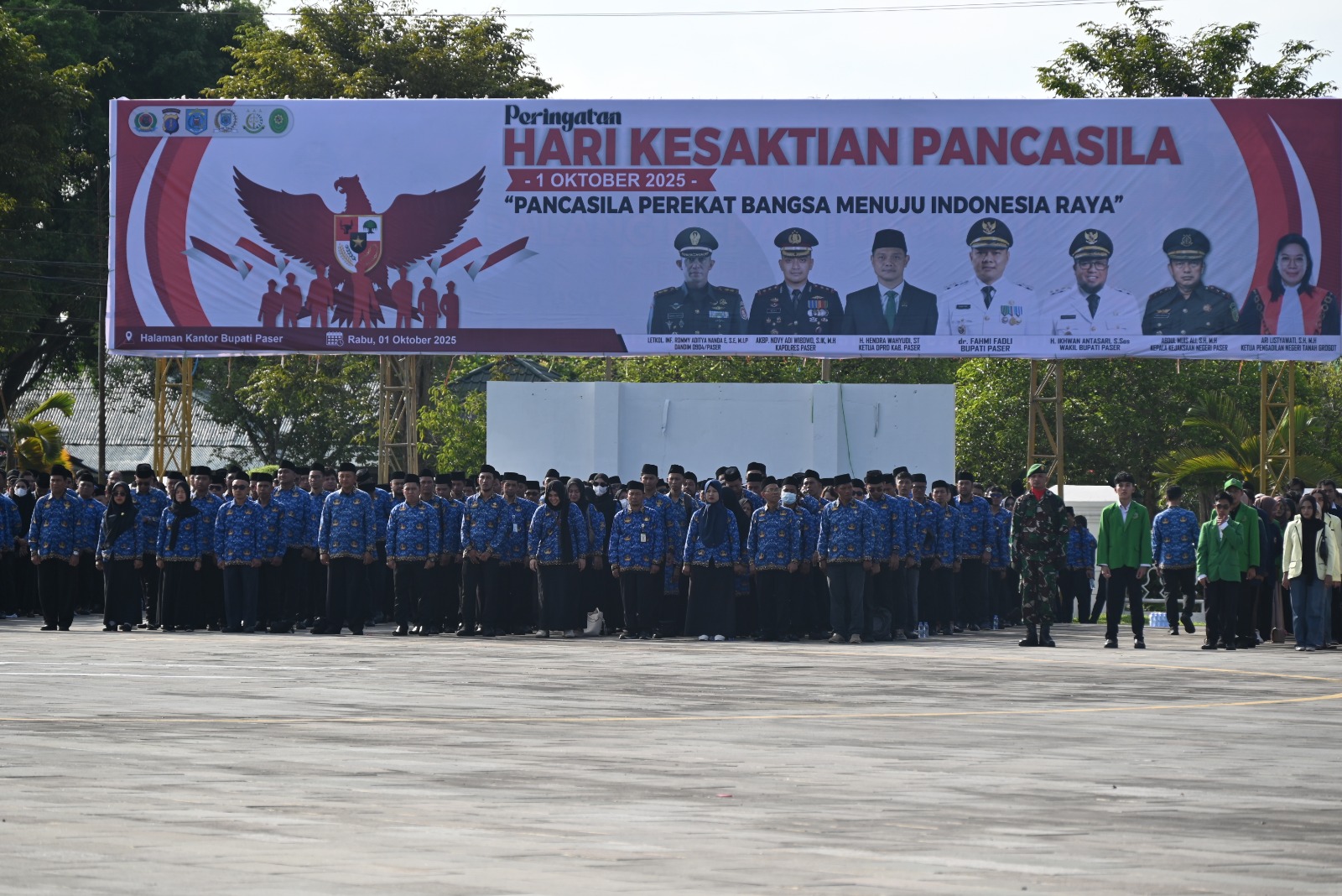 TANA PASER – Pemerintah Kabupaten Paser melalui Badan Kesatuan Bangsa dan Politik menggelar Apel dalam rangka memperingati Hari Kesaktian Pancasila tanggal 1 Oktober. Apel diikuti oleh peserta dari kalangan pelajar, PNS, TNI/Polri. Bertindak sebagai Inspektur Upacara Wakil Bupati Paser H. Ikhwan Antasar, S.Sos. Apel berlangsung di Lapangan Kantor Bupati Paser Jl. Noto Sunardi Tanah Grogot, Rabu (1/10/2025). Para peserta mengikuti rangkaian kegiatan apel dengan khidmat.