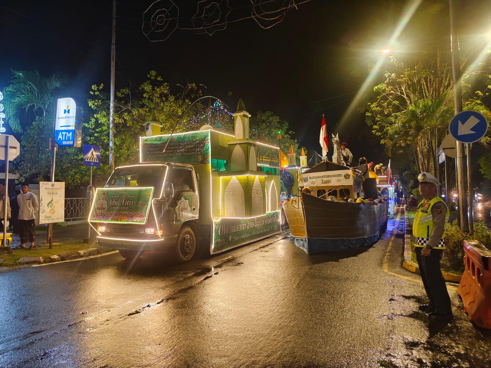 Pawai Takbir mengangkat tema Idul Fitri Sebagai Momentum Kita Perkuat Persatuan Dan Kepedulian Sosial Demi Terwujudnya Paser TUNTAS.