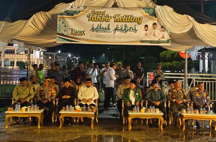 TANA PASER - Wakil Bupati Paser H. Ikhwan Antasari melepas Pawai Takbir Keliling yang di pusatkan di Jalan RM Noto Sunardi Tanah Grogot (Depan kantor Bupati Paser), Jumat (20/03/2026).