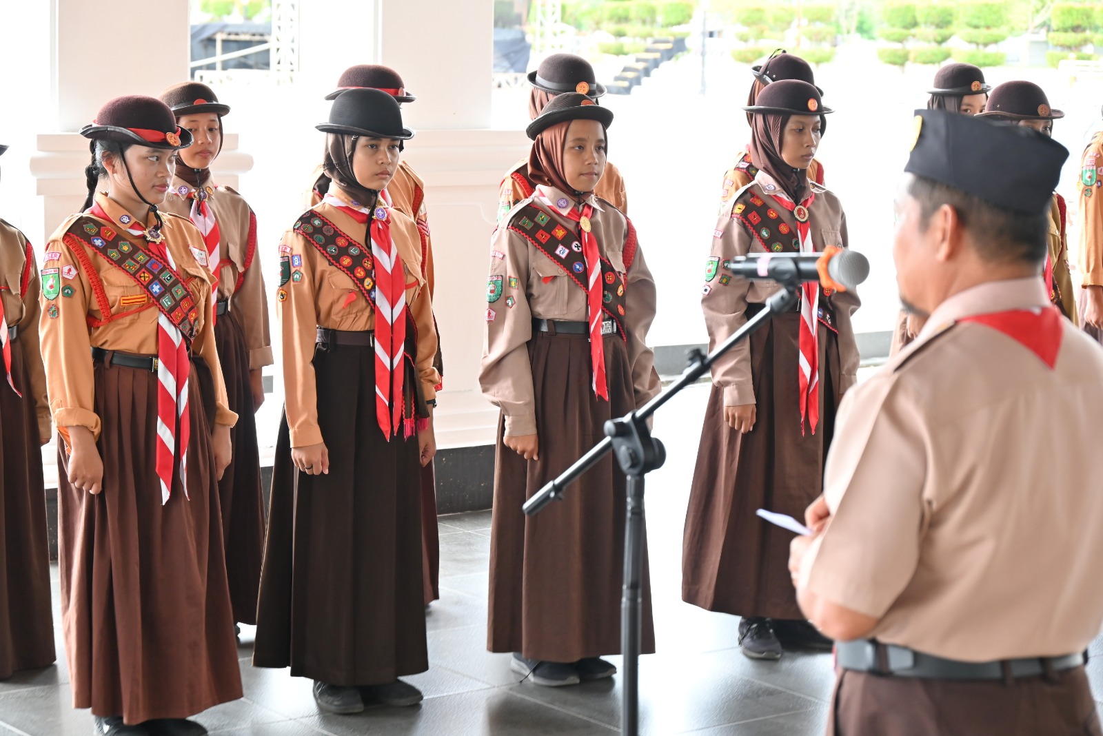 "Dengan Mengucapkan Bismillahirohmanirrlhim ,hari ini tanggal 24 November 2025 Jambore Penggalang Tingkat Provinsi Kalimantan Timur secara resmi saya lepas menuju Sangat Kutai Timur Provinsi Kaltim" Ucap Wabup.