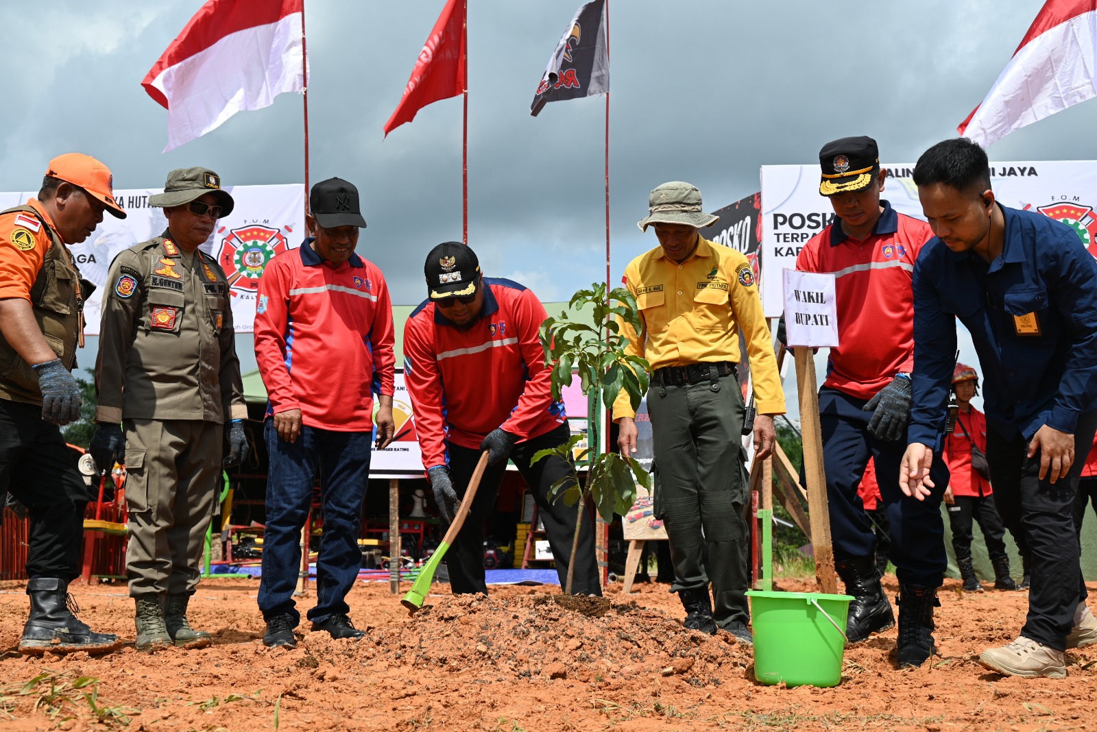 Sebelum meninggalkan Posko, Wabup melihat beberapa tenda peserta dengan peralatan yang sigap menjaga kebakaran hutan dan lahan dan juga melakukan penanaman pohon. (Prokopim)