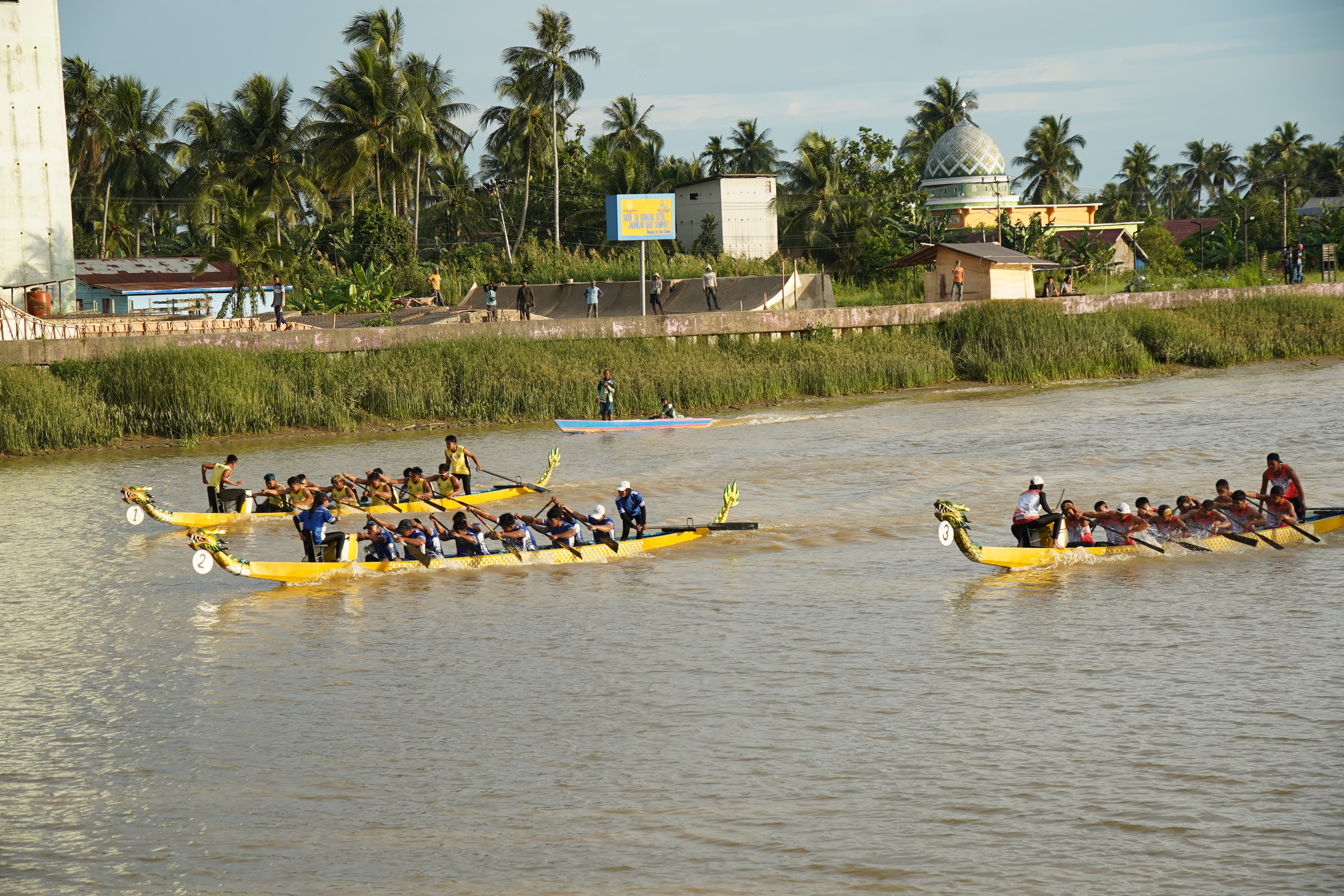 Sebelum penyerahan hadiah Wakil Bupati Ikhwan menyaksikan langsung jalannya partai final dragon boat putera dan puteri di kawasan siring Sungai Kandilo. (Prokopim)