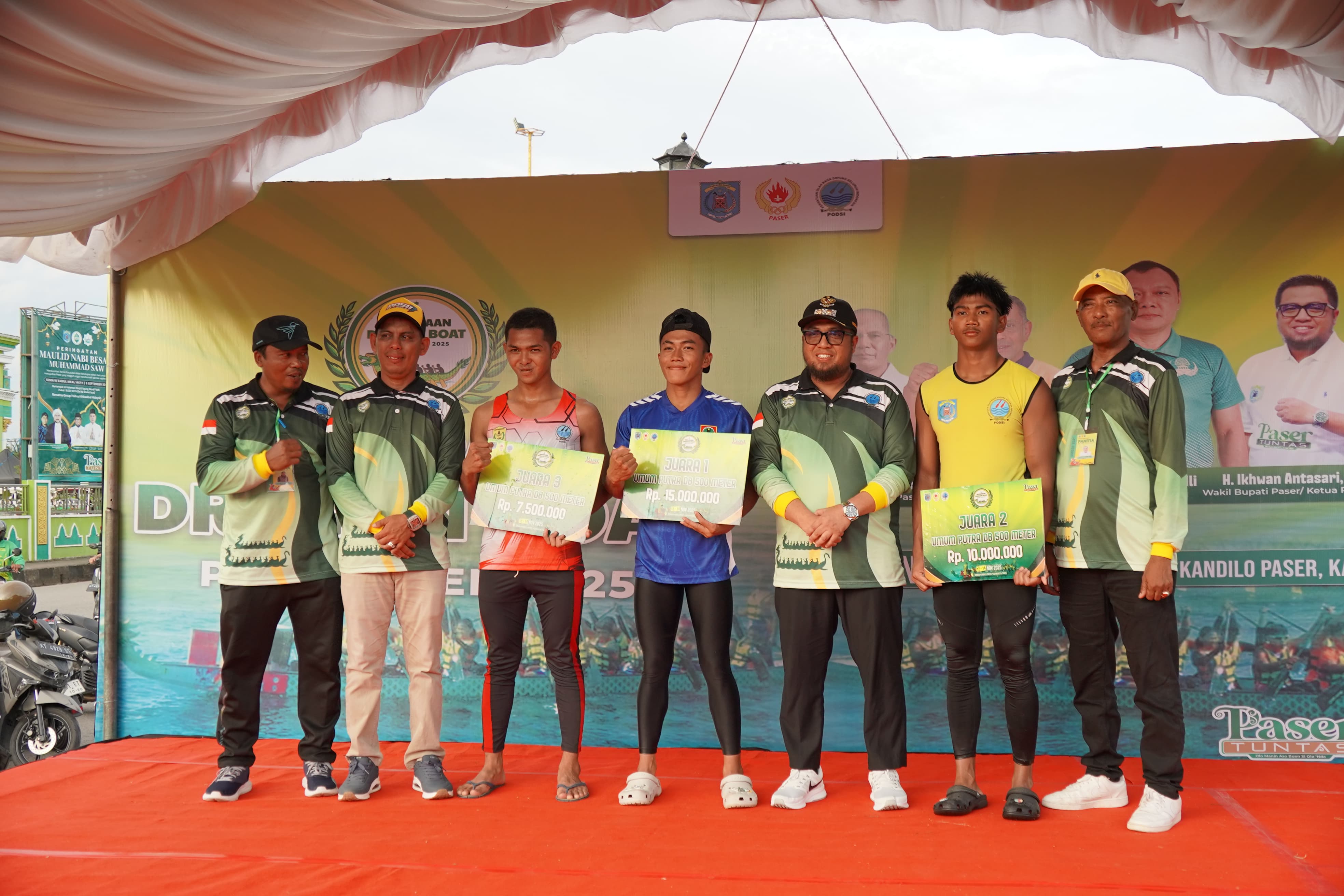TANA PASER - Rabu (12/11/2025) sore, menjadi puncak kegembiraan bagi para atlet dan tim dayung, ditandai dengan seremoni penyerahan hadiah Lomba Dayung Dragon Boat 2025 kategori 500 meter yang berlangsung meriah di Sungai Kandilo.